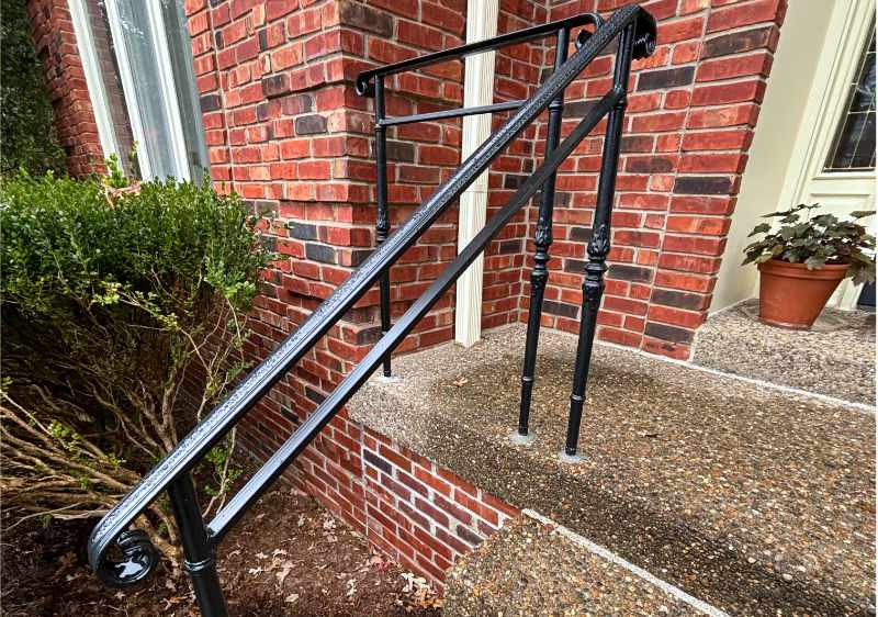 For the TL:DR crowd, our handrails are crafted from iron, steel and wrought iron. These materials are able to stand the test of time and hold up to the weather when properly sand blasted and powder coated.