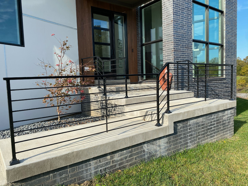 In Kentuckiana, metal exterior railings face a constant cycle of high humidity, intense summer sun, and corrosive winter road salt. While wood railings eventually rot and composite materials can warp or fade, our custom steel handrails are engineered for structural permanence. We work exclusively with heavy-gauge metal, fully welding every joint in our shop to create a single, unified outdoor step railing that won’t rattle or flex under pressure.